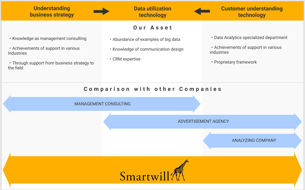 Smartwill is a group of CRM professionals who design relationships between companies and their customers, creating new value that leads to innovations in business structure.
